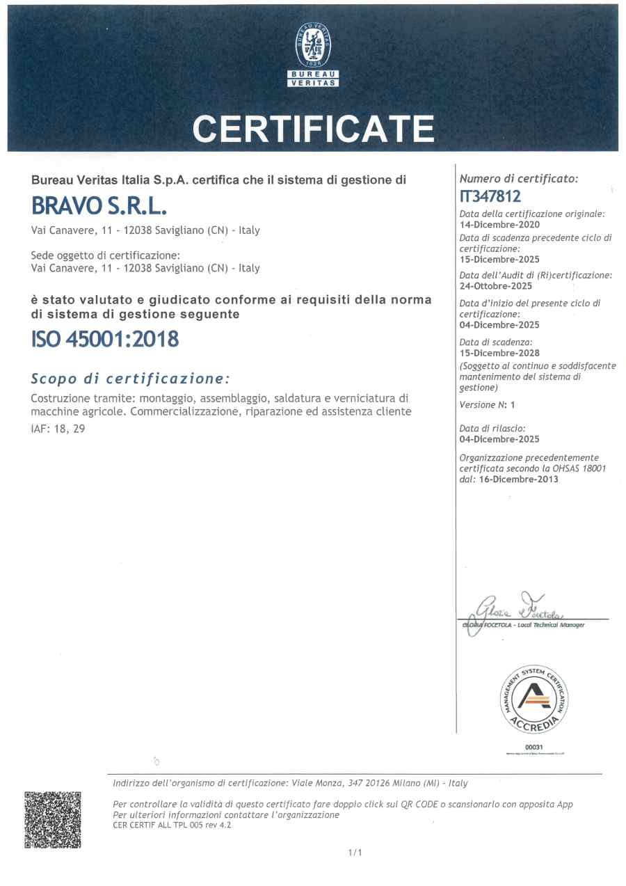 With the entry into force of Legislative Decree n° 81 (formerly 626) in April 2009, it was inevitably necessary to adapt the working methods, in order to prevent and preserve workers from possible accidents during the activities. This management was organized with the support of a new modus operandi linked to safety at work (SSL), in accordance with the new ISO 45001:2018 standard, alongside the already existing company work system. These two types approaches will allow the company to provide and improve information / training to its workers, so that the provision of services takes place with safety standards. This international standard (ISO 45001:2018) thus entered the organization’s production cycle, bringing benefits both in terms of global process management as well as a newfound awareness of working total peace of mind in the workplace.